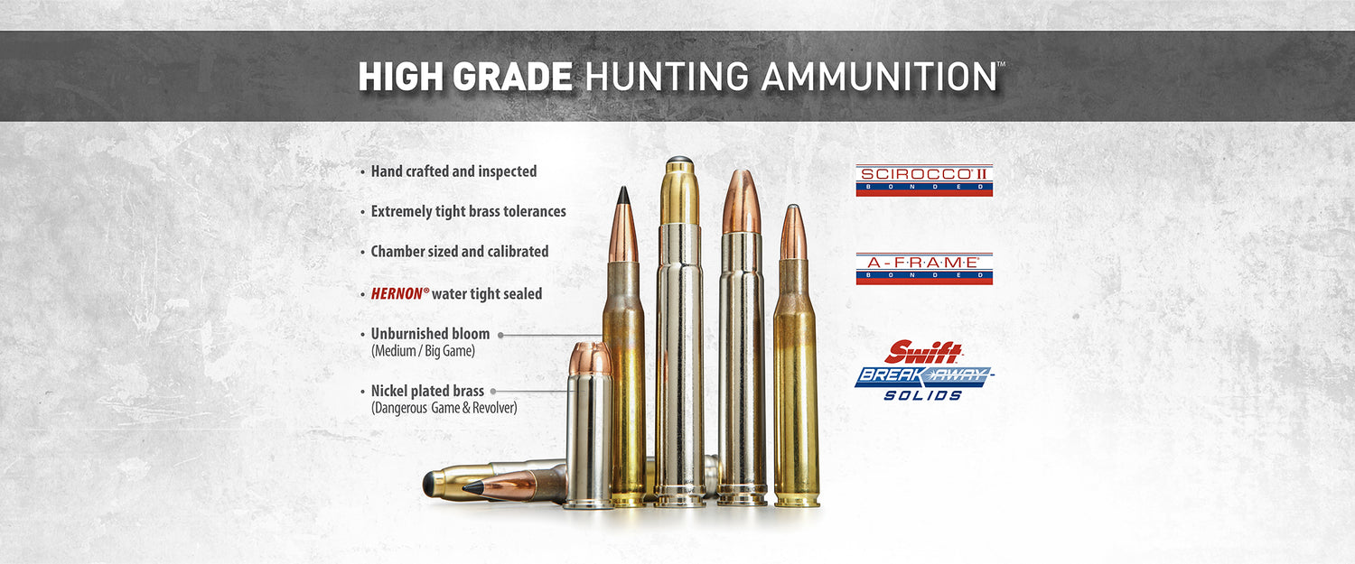 Hunting is one of the greatest experiences on earth and a tradition that can and should be passed on for generations to come. No matter where you hunt, the species you pursue, the climate, or the terrain, Swift™ bullets are designed to provide superior performance over a wide range of conditions. The driving force behind Swift is to develop the best hunting bullets ever made and Swift™ has not one but two great bullet lines in A-Frame and Scirocco. At Swift we strive to make hunting bullets that perform two very important functions. First, we make bullets that shoot straight and second, we make bullets that provide great terminal performance. Remember your bullet, at whatever the cost, is the least expensive, most important part of your hunt - many hunters all over the world know this and purchase our bullets.
